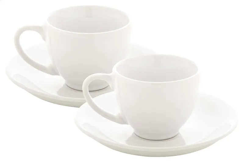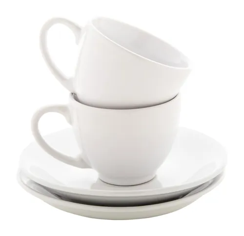 Kerámia eszpresszó szett két csészével és alátéttel, 90 ml. Fehér papírdobozban szállítjuk.