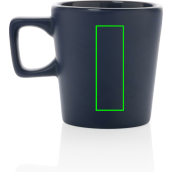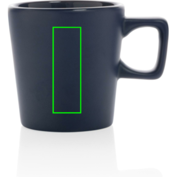 Ez a kerámia bögre minden asztalon jól mutat! A bögre belső felülete fényes, külseje matt. A termék mosogatógépbe rakható valamint megfelel az EN12875-1 szabályozásnak (legalább 125 mosás) minden emblémázási mód esetén. Ajándékdobozban. Űrtartalma 300ml.