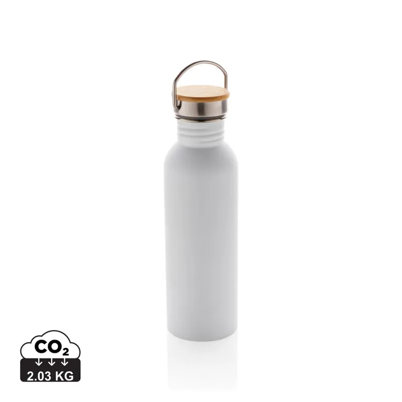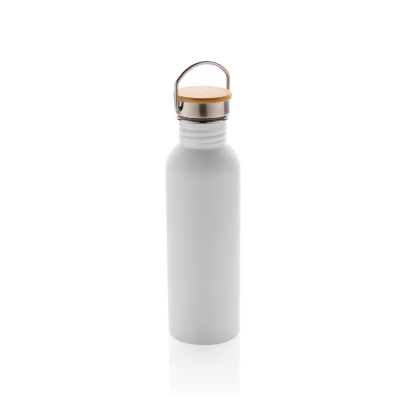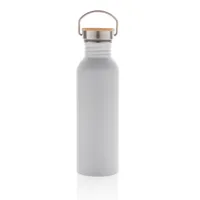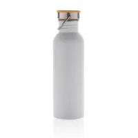 Modern rozsdamentes acél palack bambusz fedéllel Fehér
