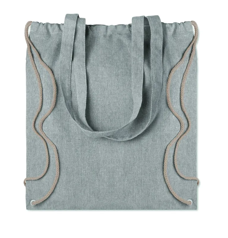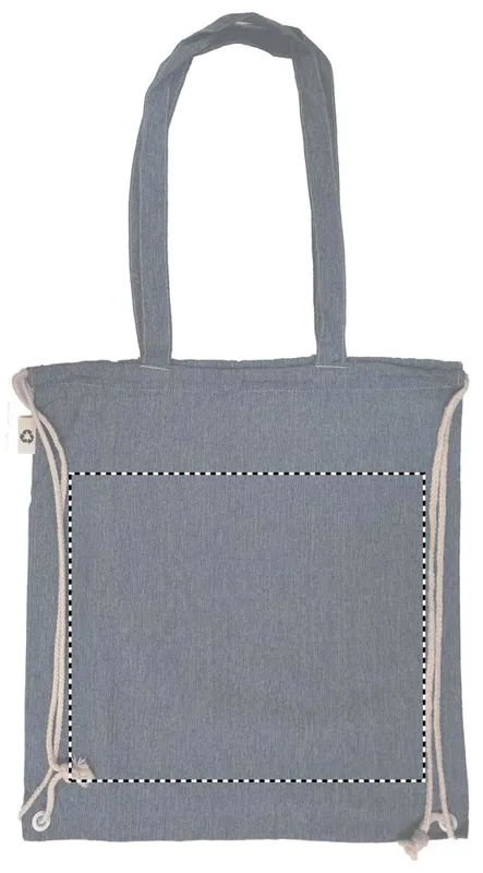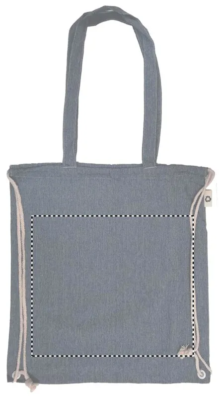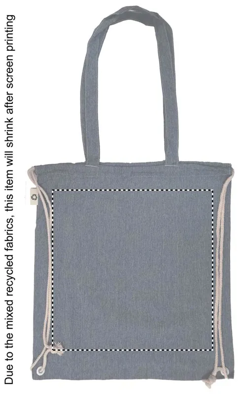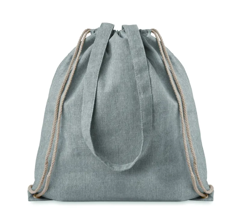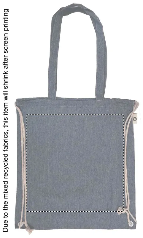 Újrahasznosított pamutból és poliészterből készült zsák húzózsinórokkal és hosszú fülekkel (20%/80%). Kb. 140 g vastag anyag. Ez az anyag nyomtatás után zsugorodhat.
