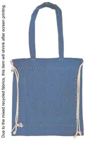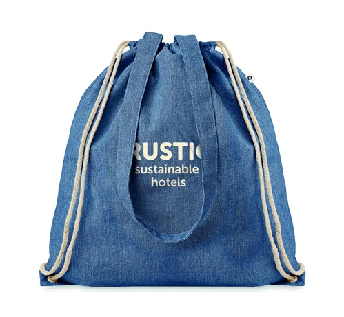 Újrahasznosított pamutból és poliészterből készült zsák húzózsinórokkal és hosszú fülekkel (20%/80%). Kb. 140 g vastag anyag. Ez az anyag nyomtatás után zsugorodhat.