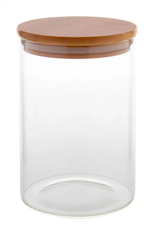 Boroszilikát üveg tárolóedény bambusz fedéllel. 1000 ml. Ideális száraz élelmiszerek tárolására.