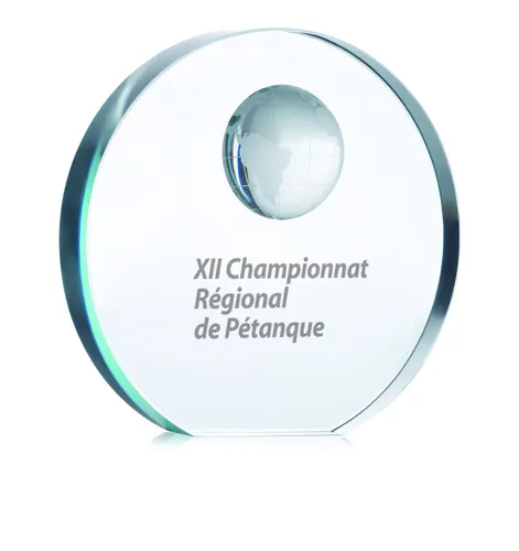 Elegáns, kerek üvegdísz. Tetején fél földgömb mintával. Ajándékdobozban.