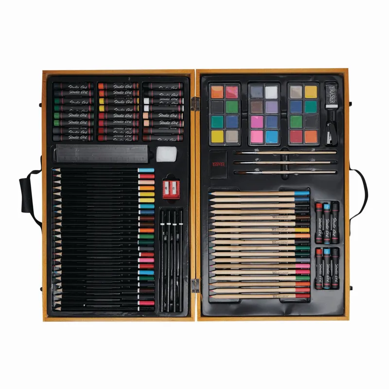 MONET 88 darabos művész színező készlet fadobozba csomagolva fémpántokkal, és fogóval