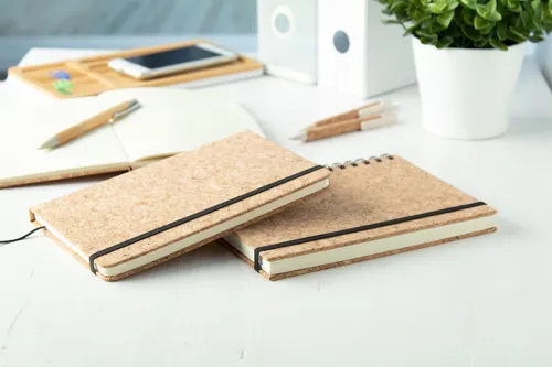 Természetes parafa borítású spirál füzet 100 vonalas lappal, A5.