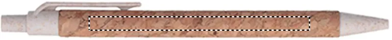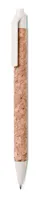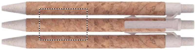 Nyomógombos golyóstoll parafa tolltesttel, környezetbarát búzaszalma (50%) és ABS műanyag (50%) szerelvényekkel. Kéken író betéttel. A parafa természetes anyag, szerkezeti jellege és felületi porozitása miatt az egyes tárgyak végső emblémázási eredménye eltéréseket mutathat.