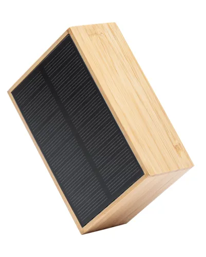 Bambusz vezeték nélküli hangszóró beépített napelemmel és újratölthető akkumulátorral. USB töltőkábellel szállítjuk.