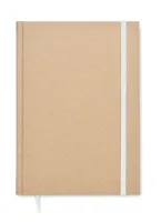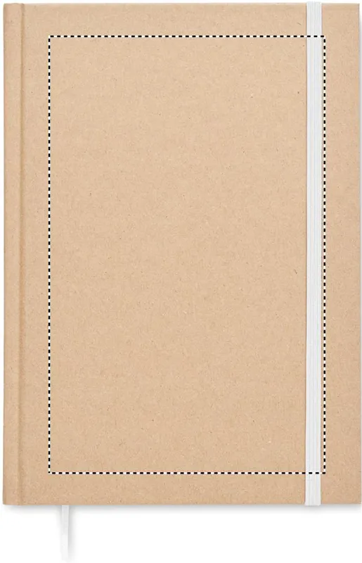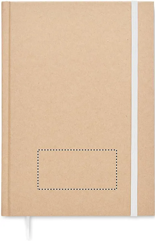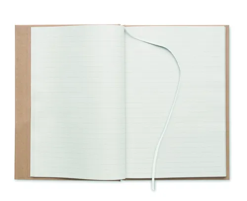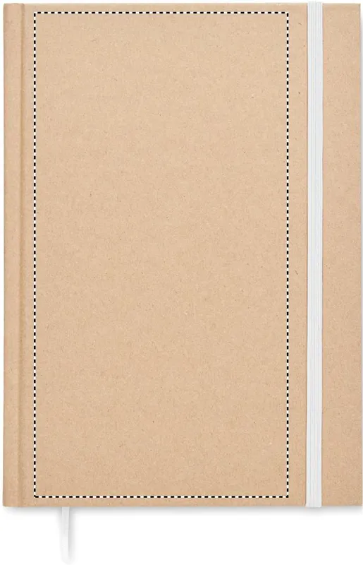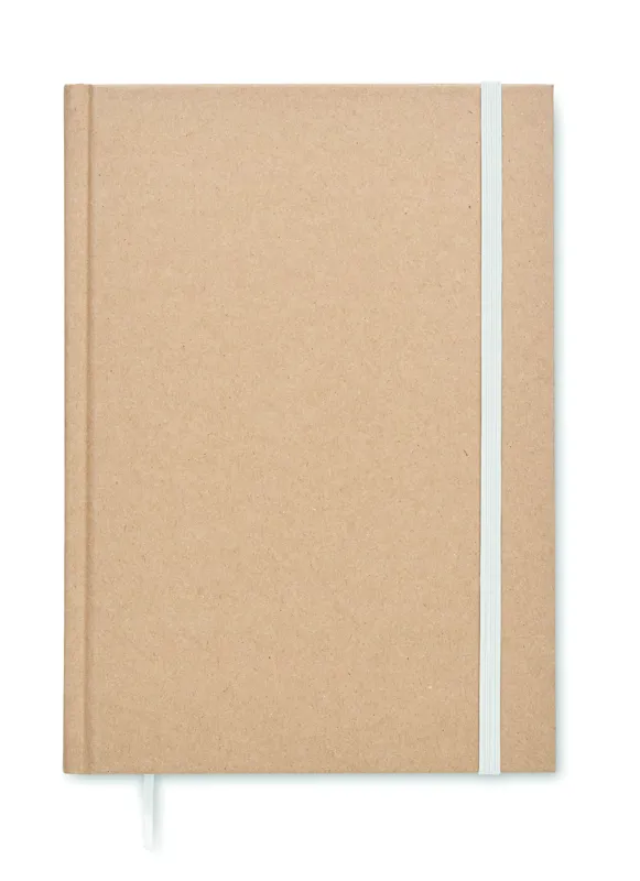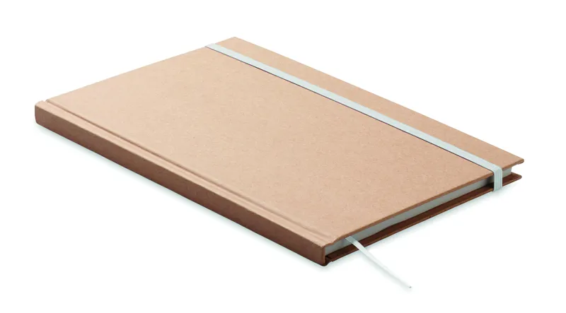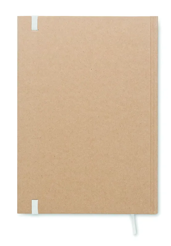 A5 jegyzetfüzet keménytáblás, újrahasznosított kartonborítóval. Cérnafűzött. 200 vonalas oldal (100 lap), 80 g vastag újrahasznosított papírból. Elasztikus zárópánt és könyvjelző szalag. EU-ban gyártva.