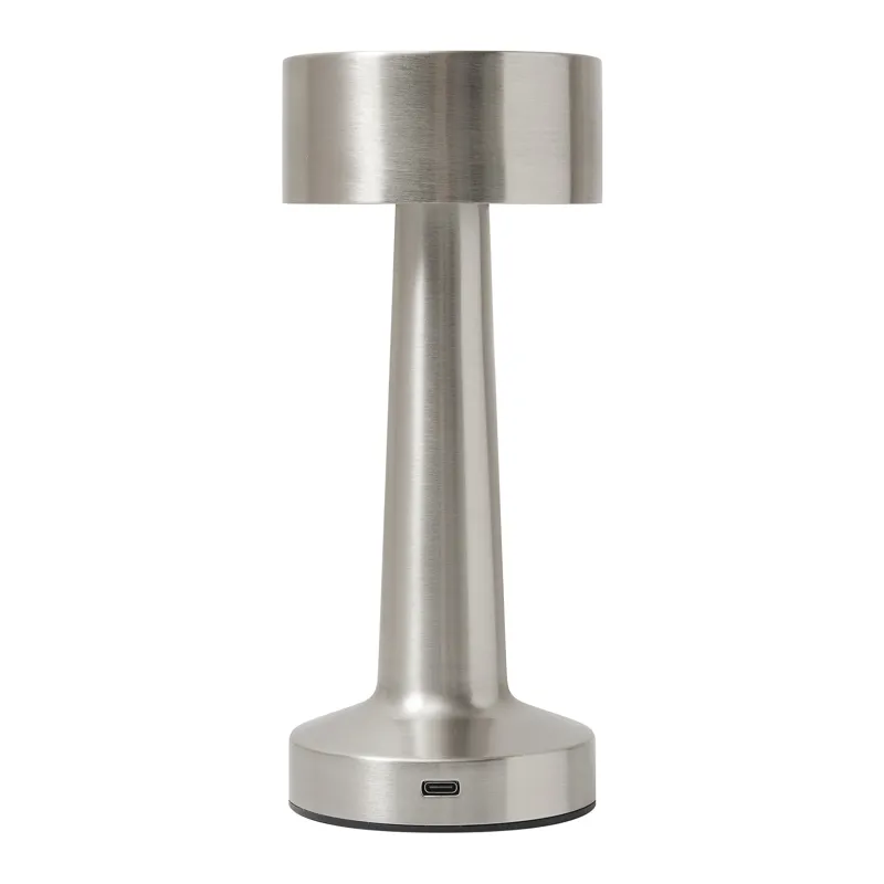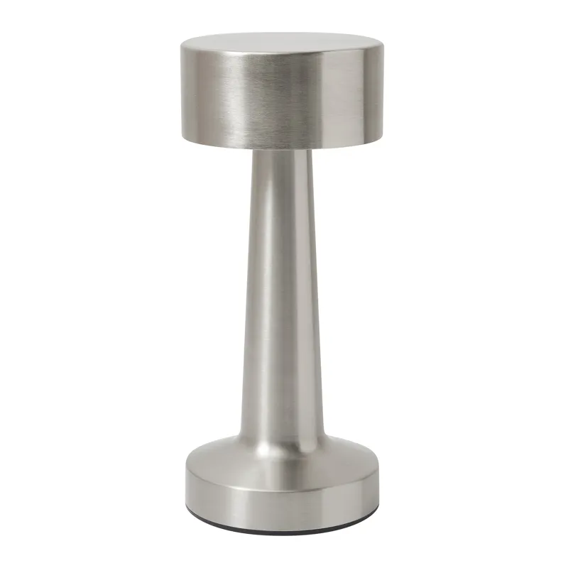 MUSHROOM rozsdamentes acél asztali lámpa: 3 fénymód (meleg, fehér és meleg fehér fény), érintésérzékeny ki/be kapcsoló és fénymód választás, USB töltőkábellel USB Type-C csatlakozóval (hossz kb. 100 cm), be/ki gomb az alján, sokoldalúan használható a beépített 800 mAh-s lítium akkumulátornak köszönhetően, 4 csúszásmentes talp az alján, dobozban