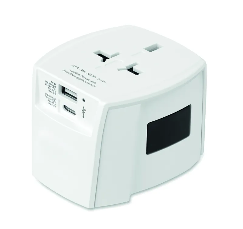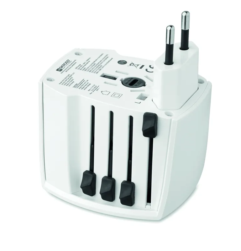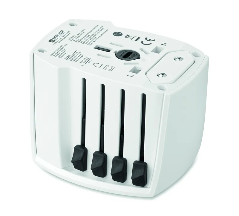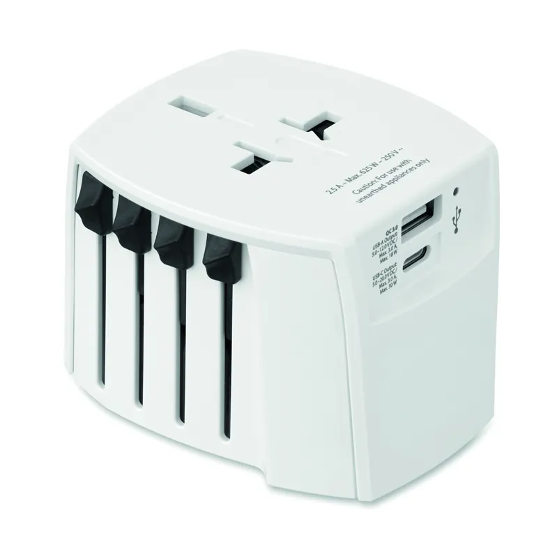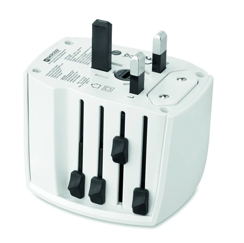 SKROSS® MUV USB — univerzális, 2 pólusú utazó adapter USB-A és C-típusú portokkal. 30W (C-típus) és 18W (USB-A) a gyors és biztonságos töltés érdekében világszerte. Kompakt, utazáshoz ideális.