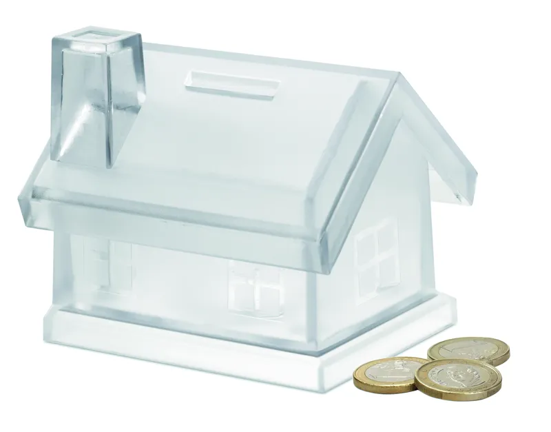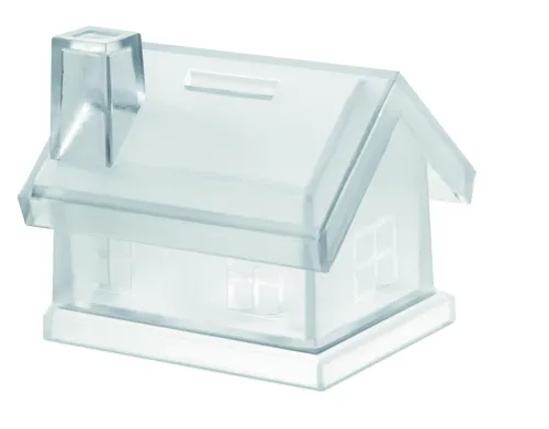 Műanyag, házikó alakú persely.