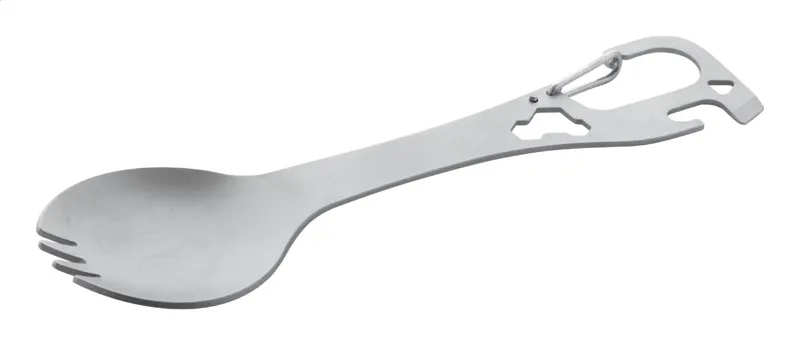 Rozsdamentes acél evőeszköz (kanál és villa) multiszerszám karabinerrel.