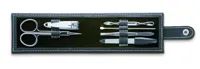 Manikűrkészlet téglalap alakú PU tokban. 6 részes, rozsdamentes acél eszközökkel.