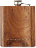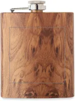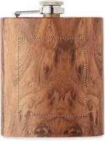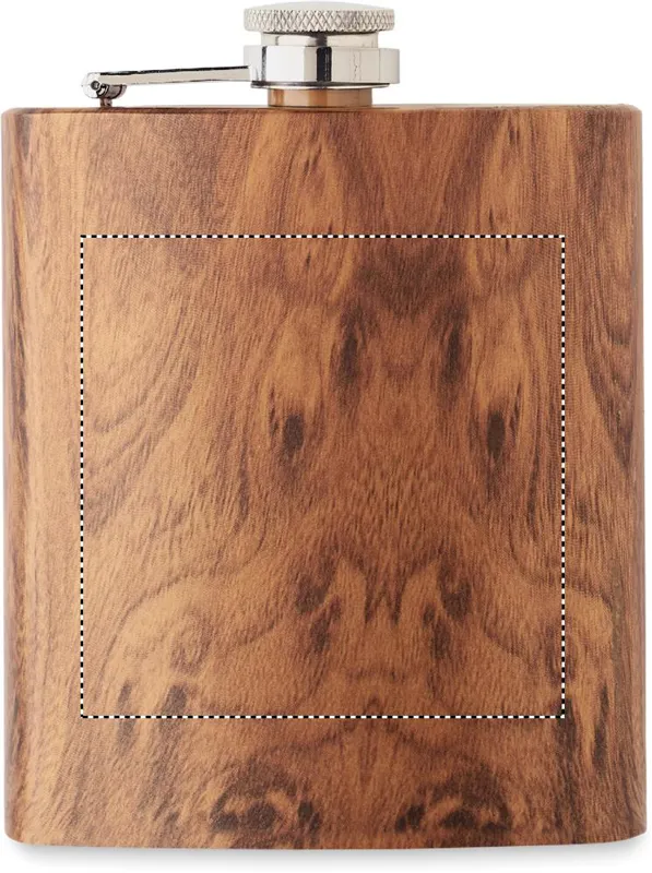 Vékony laposüveg újrahasznosított rozsdamentes acélból (90% újrahasznosított rozsdamentes acél, 10% rozsdamentes acél), fa nyomattal. Űrtartalom: 190 ml.