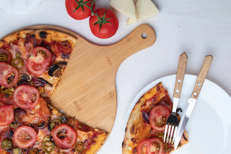 Bambusz pizza vágódeszka 32 cm-es pizzához.