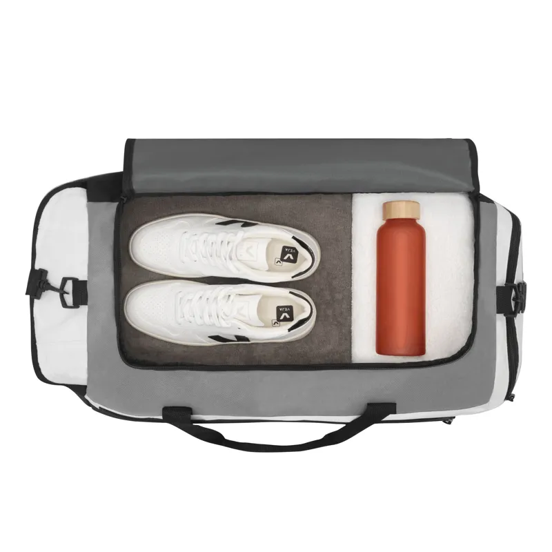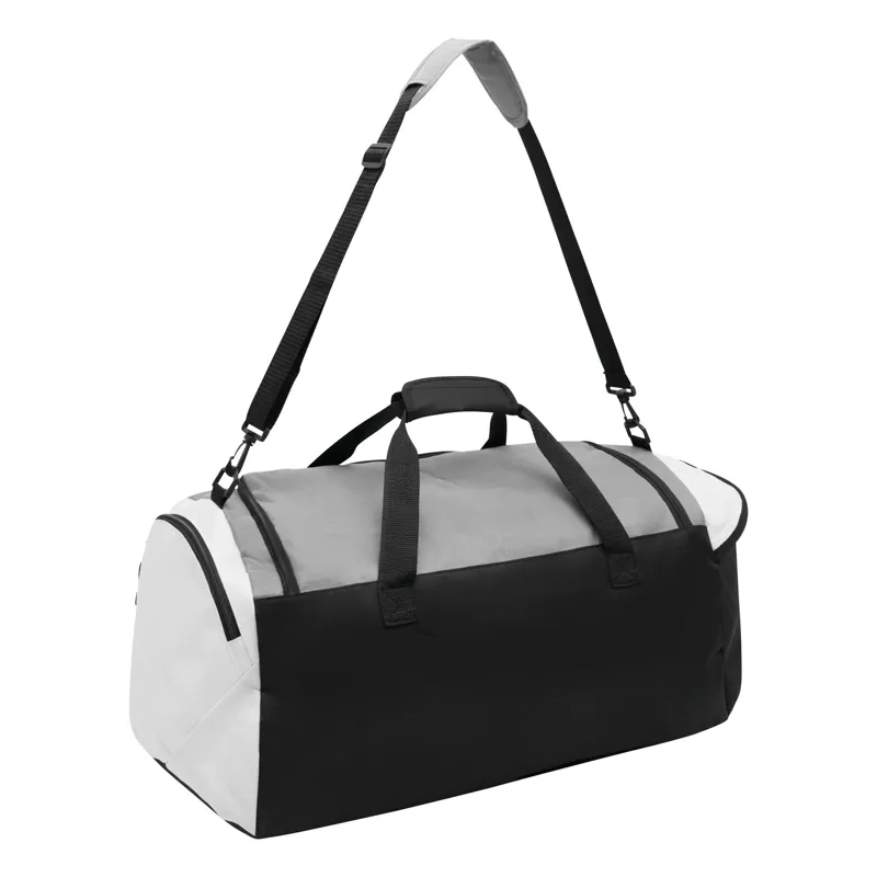 NARVIK sporttáska cipzáras fő rekesszel, 1 cipzáras első zsebbel, 2 kisebb oldalsó zsebbel, megerősített hordozó fülekkel, állítható és lecsatolható vállpántokkal