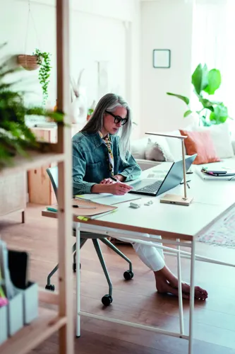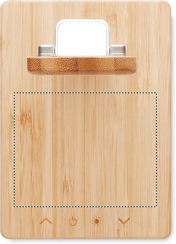 Összecsukható bambusz asztali lámpa 48 LED fénnyel és 10W-os vezeték nélküli töltővel, valamint 2 USB csatlakozóval. Érintőszenzoros. Teljesítmény: DC 9V/1.1A (10W) a gyorstöltéshez. A bambusz természetes anyag, színében, mintázatában FSC 100% | N5.7 | FSC-C213206