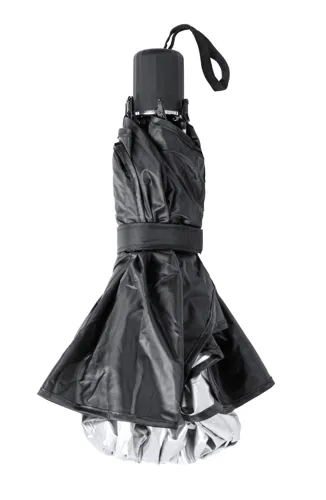 Kihajtható autós napellenző ernyő szélvédőre fém szegéllyel, poliészter tasakban.