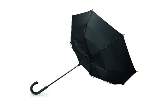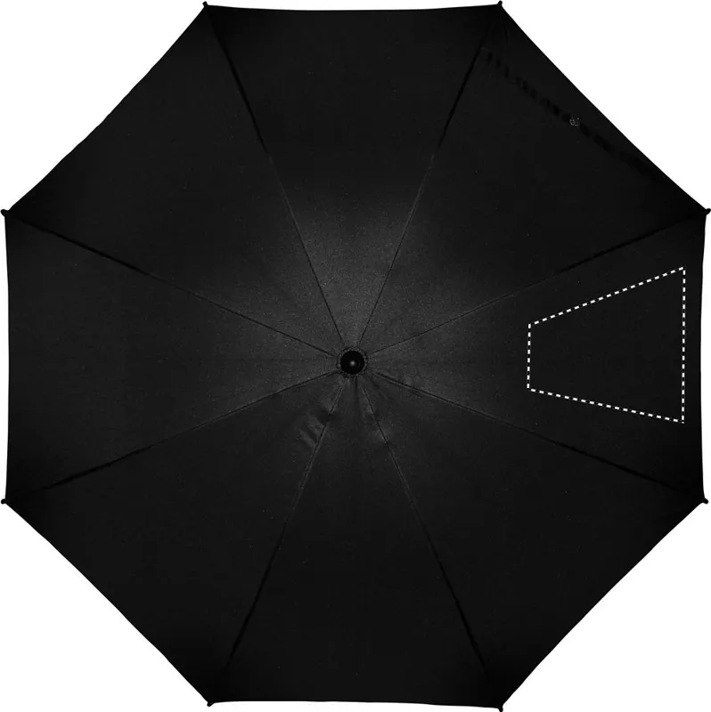 23 colos luxus automata viharesernyő 190T nyersselyemből. Fekete fém nyél. Fekete üvegszálas váz és fekete műanyag végek. Fekete hajlított, gumírozott ABS markolat, szürke gombbal. Manuális záródás.