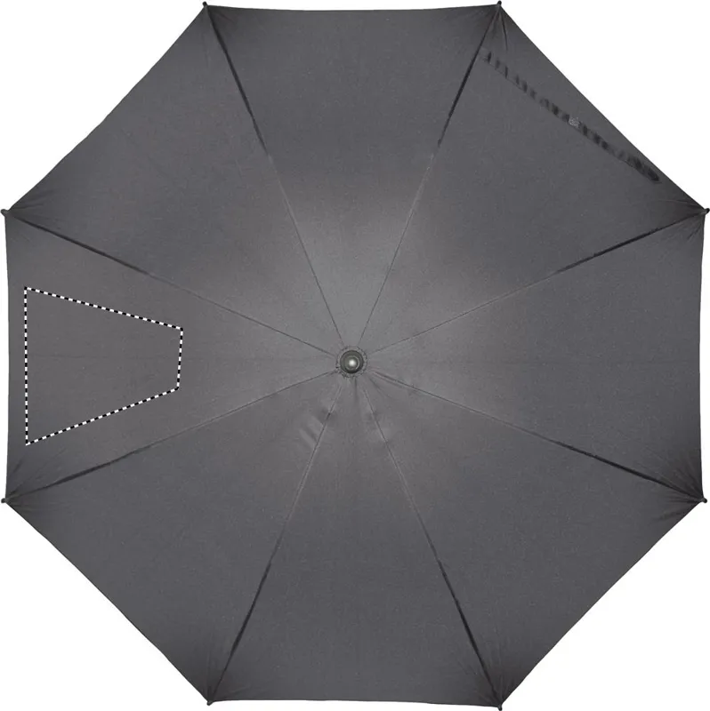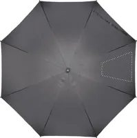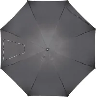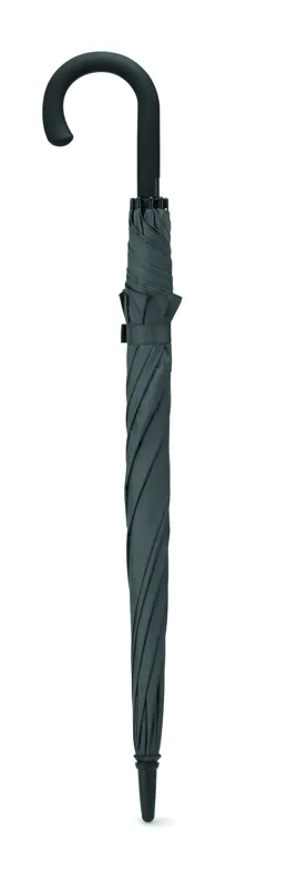 23 colos luxus automata viharesernyő 190T nyersselyemből. Fekete fém nyél. Fekete üvegszálas váz és fekete műanyag végek. Fekete hajlított, gumírozott ABS markolat, szürke gombbal. Manuális záródás.