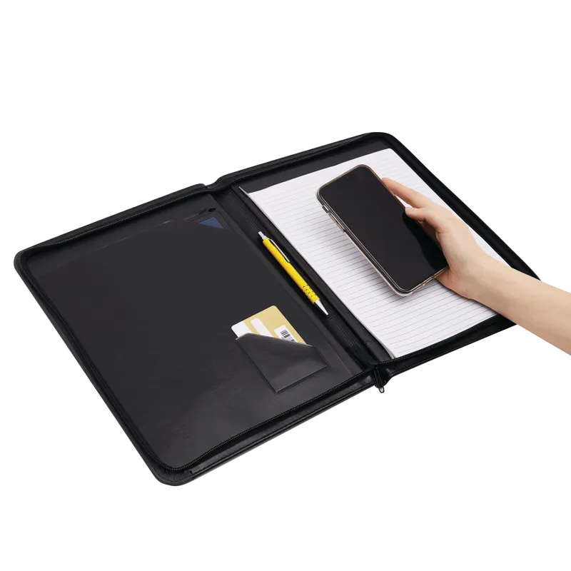NEW STAR mappa: DIN A4-es formátumban, körkörös cipzárral, jegyzettömbbel és becsúsztatható zsebbel, további becsúsztatható zseb névjegykártyáknak, kívül elasztikus hurok a tollnak