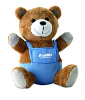 Plüssmaci kantáros nadrágban.