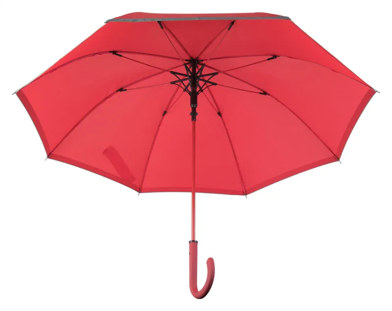 Automata, szélálló, 8 paneles esernyő szélén fényvisszaverő csíkkal, gumírozott fogantyúval, színes fém nyéllel és megegyező színű üvegszálas vázzal. Anyaga 190T pongee. A termék kizárólag promóciós célra alkalmas, nem minősül egyéni védőfelszerelésnek.
