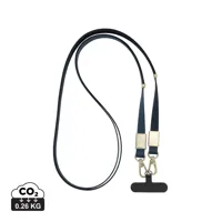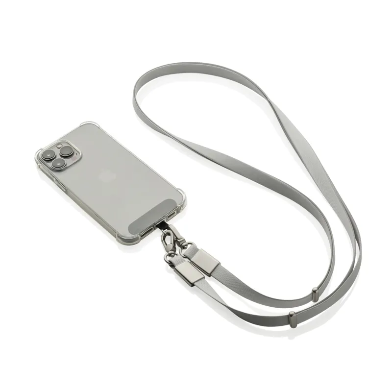 A Nivo egy univerzális keresztpántos telefon nyakpánt, amely biztonságban tartja készülékét és mindig kéznél tartja. Újrahasznosított PET-ből, prémium alumínium részletekkel készült, így tartós és modern megjelenésű. A vastag, kiváló minőségű pánt kényelmes viseletet biztosít, ideális mindennapi használatra. Univerzális kialakítása minden védőtokos telefonnal kompatibilis, így a készülék biztonságosan hordható a funkcionalitás korlátozása nélkül. A Nivo viselhető nyak körül vagy keresztpántként, teljes kéz nélküli kényelmet biztosítva. Az állítható pánt 200 cm és 120 cm között állítható, így minden felhasználó számára megfelelő. RCS (Recycled Claim Standard) tanúsítvánnyal rendelkező újrahasznosított PET-ből és alumíniumból készült. Az újrahasznosított tartalom aránya a teljes terméktömeg 18%-a. PVC-mentes és műanyagmentes FSC csomagolásban kerül kiszerelésre.