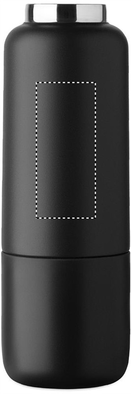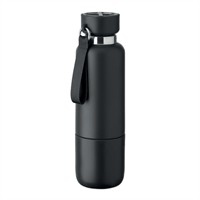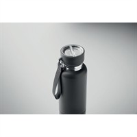 Duplafalú termoszpalack újrahasznosított rozsdamentes acélból (90% újrahasznosított rozsdamentes acél és 10% rozsdamentes acél), integrált hordpánttal és további hosszú pánttal (70 cm) a PP fedélben. Szivárgásmentes. Az alján pohárral. Űrtartalom: 500 ml.