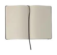 PU bőr borítású jegyzetfüzet 100 sima lappal, könyvjelzővel, gumipánttal zárható.