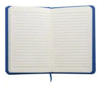 PU bőr borítású jegyzetfüzet 100 vonalas lappal, könyvjelzővel, gumipánttal zárható. A6 méretű.