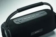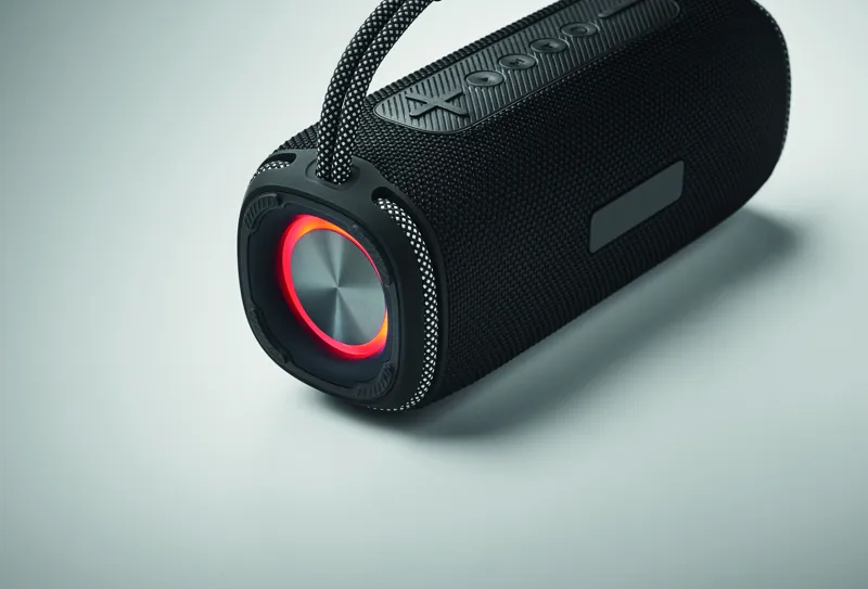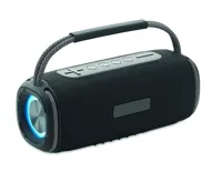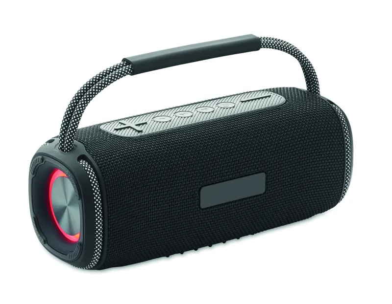 2x10 W vezeték nélküli hordozható hangszóró, 2400 mAh újratölthető akkumulátorral. AUX, USB, TF portokkal. Változó színű LED fény a hangszóró mindkét oldalán. Üzemidő kb. 5 óra.