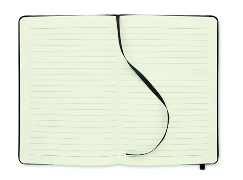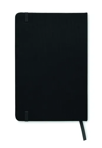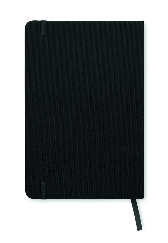 A5 jegyzetfüzet 600D RPET keménytáblás borítóval. Cérnafűzött. 160 vonalas oldal (80 lap) újrahasznosított papírból. Hozzáillő elasztikus zárópánt és könyvjelző szalag. FSC®-certified | FSC MIX CREDIT, P7.1, FSC-C213206