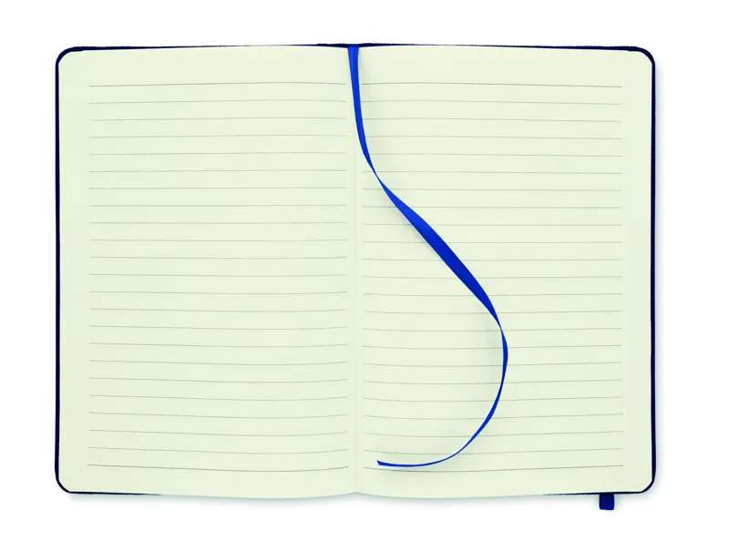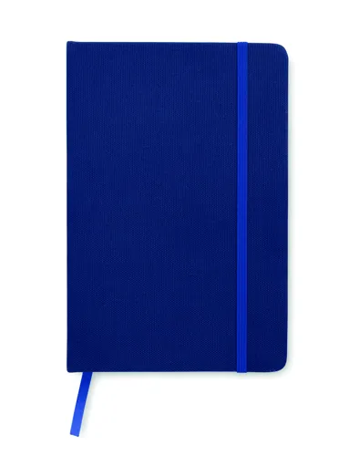 A5 jegyzetfüzet 600D RPET keménytáblás borítóval. Cérnafűzött. 160 vonalas oldal (80 lap) újrahasznosított papírból. Hozzáillő elasztikus zárópánt és könyvjelző szalag. FSC®-certified | FSC MIX CREDIT, P7.1, FSC-C213206