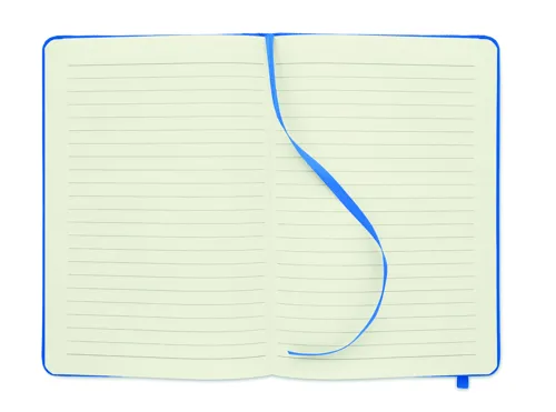A5 jegyzetfüzet 600D RPET keménytáblás borítóval. Cérnafűzött. 160 vonalas oldal (80 lap) újrahasznosított papírból. Hozzáillő elasztikus zárópánt és könyvjelző szalag. FSC®-certified | FSC MIX CREDIT, P7.1, FSC-C213206