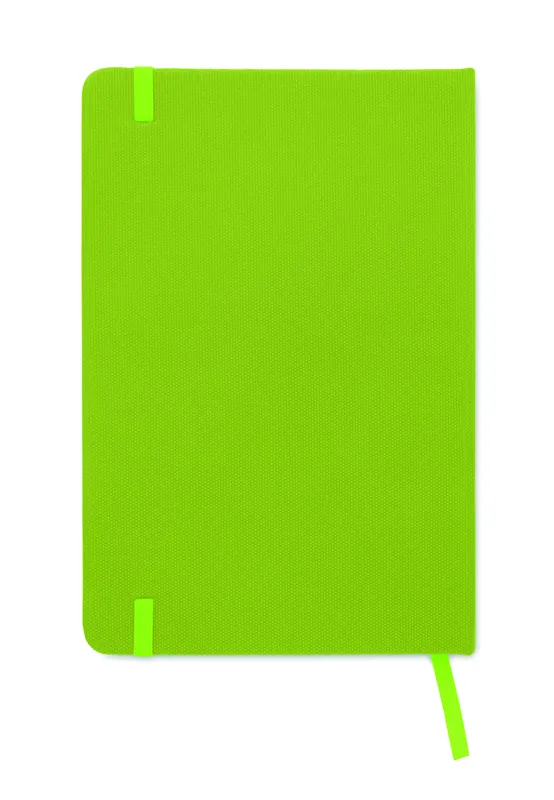 A5 jegyzetfüzet 600D RPET keménytáblás borítóval. Cérnafűzött. 160 vonalas oldal (80 lap) újrahasznosított papírból. Hozzáillő elasztikus zárópánt és könyvjelző szalag. FSC®-certified | FSC MIX CREDIT, P7.1, FSC-C213206