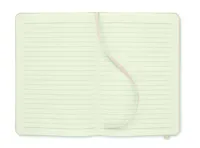 A5 jegyzetfüzet 600D RPET keménytáblás borítóval. Cérnafűzött. 160 vonalas oldal (80 lap) újrahasznosított papírból. Hozzáillő elasztikus zárópánt és könyvjelző szalag. FSC®-certified | FSC MIX CREDIT, P7.1, FSC-C213206
