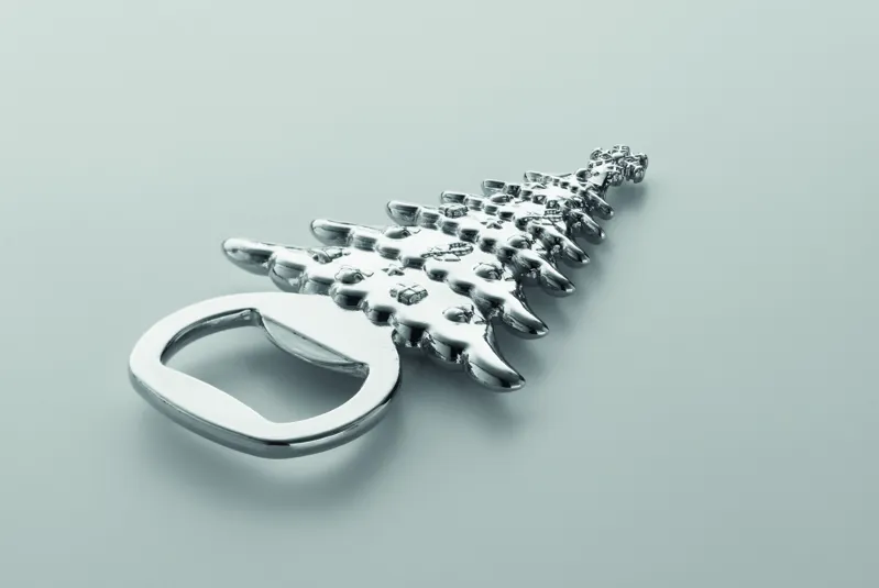 Cink ötvözetből készült, karácsonyi mintás üvegnyitó.