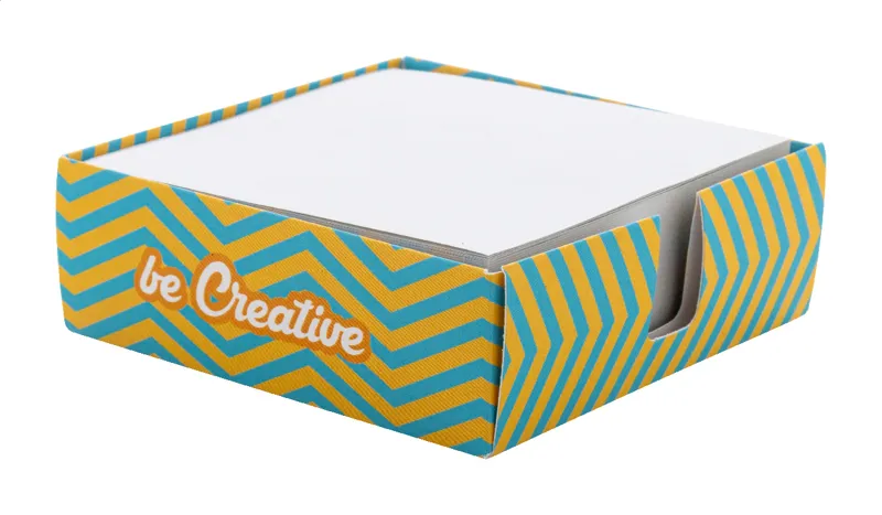 Egyedi gyártású, papír jegyzettartó 300 lapos jegyzettömbbel, újrahasznosított papírból (90×90 mm). Az ár tartalmazza a tartó full colour nyomtatását. Minimális rendelési mennyiség: 100 db.