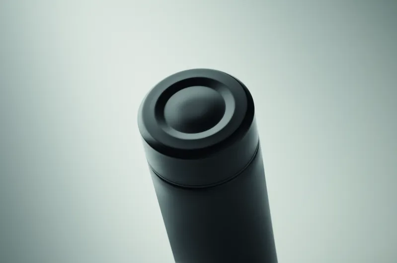 Duplafalú termoszpalack újrahasznosított rozsdamentes acélból (90% újrahasznosított rozsdamentes acél és 10% rozsdamentes acél), belső kerámia bevonattal. Szivárgásmentes. Űrtartalom: 420 ml.
