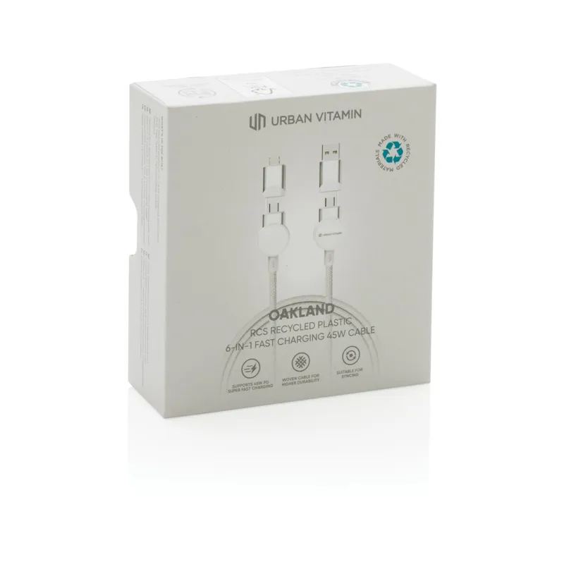 Oakland RCS újrahaszn. műanyag 6az1-ben gyorstöltő 45W kábel Fehér