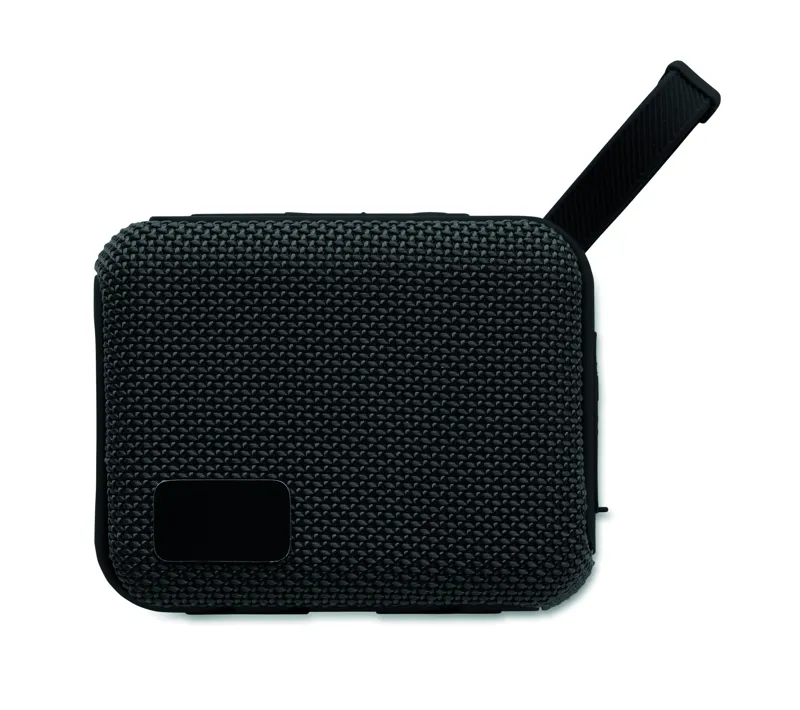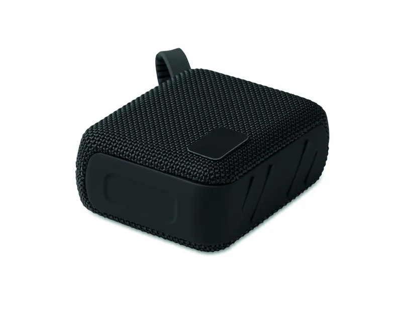 5.0 vezeték nélküli hangszóró ABS-ből, RPET hangfalselyemmel, akasztózsinórral. 1 újratölthető 800 mAh lítium-ion akkumulátorral. SD-kártya porttal és AUX/USB kábellel. Teljesítmény: 5W, 3 Ohm és 5V. Üzemidő kb. 3 óra.