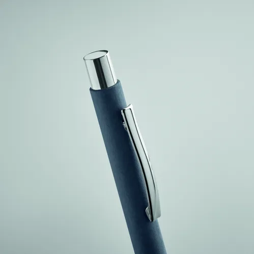 Nyomógombos golyóstoll újrahasznosított papírból, fém csíptetővel, műanyag szerelvényekkel. Kéken író betét. FSC®-certified | FSC RECYCLED, P9, FSC-C213206