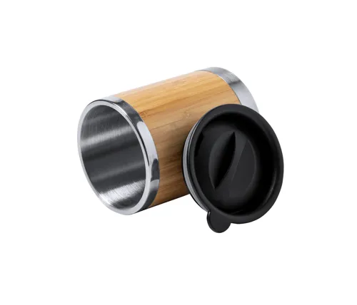 Duplafalú rozsdamentes acél és bambusz thermo pohár műanyag ivófedéllel. 300 ml.