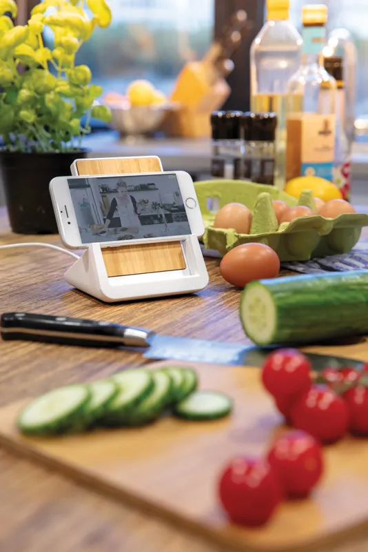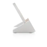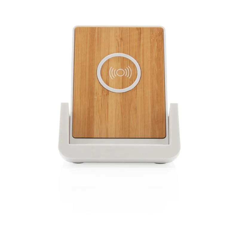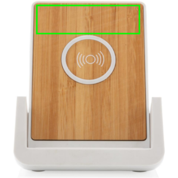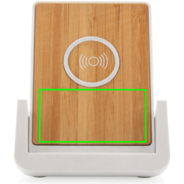 RCS (Recycled Claim Standard) újrahasznosított ABS-ből készült 10W-os vezeték nélküli töltő. Teljes újrahasznosított anyag tartalom: 47% a termék összsúlya alapján. Az RCS-tanúsítvány biztosítja az újrahasznosított anyagok ellátási láncát. Bambusz vezeték nélküli töltési felület FSC 100 bambuszból. Két USB csatlakozóval a hátoldalán a kábellel történő töltéshez. Az állványt arra tervezték, hogy a telefont vízszintes és függőleges helyzetben egyaránt töltse. A vezeték nélküli töltés az Android legújabb generációival, iPhone 8 és újabb verziókkal kompatibilis. At ermék és tartozékai PVC-mentesek. RCS újrahasznosított TPE-ből készült 120 cm-es C típusú töltőkábellel. FSC mix kraft dobozban. C típusú bemenet; Bemenet 5V/2A; 9V/2A; Vezeték nélküli kimenet 5V/1A; 9V/1,1A; (10 W) Bejegyzett dizájn®
