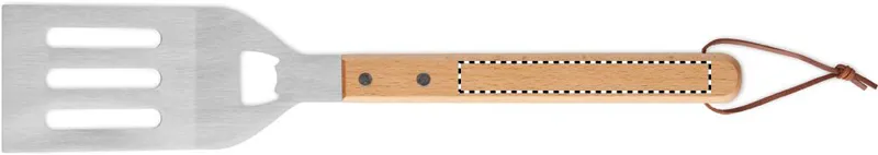 Rozsdamentes acél grill lapát bükkfa nyéllel és beépített üvegnyitóval. PU zsinóros akasztóval a könnyű tárolás érdekében.
