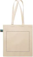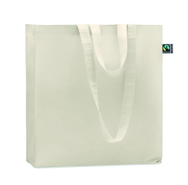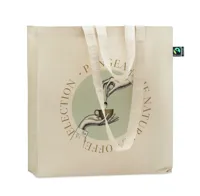 Fairtrade pamut bevásárlótáska toldással és hosszú fülekkel. 180 g vastag anyag.