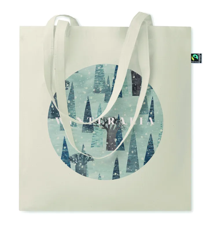 Fairtrade pamut bevásárlótáska hosszú fülekkel. 180 g vastag anyag.