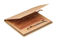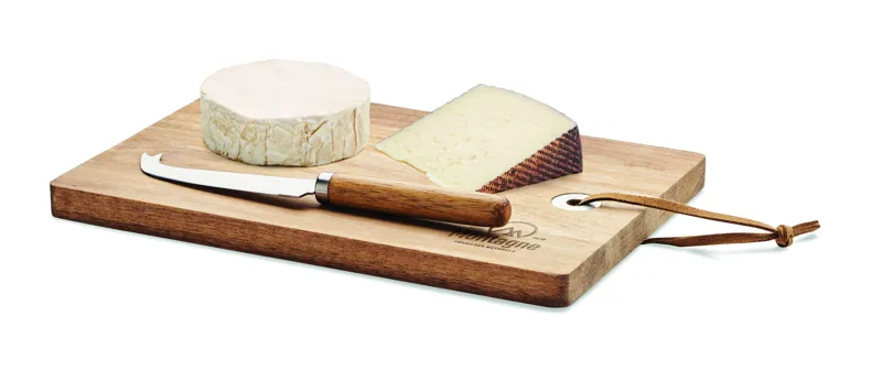 Akáciafa sajt tálaló deszka késsel. Hullámkarton díszdobozban. A fa természetes anyag, termékenként szín- és méretbeli eltérések jelentkezhetnek, ami befolyásolhatja a dekoráció végső eredményét.