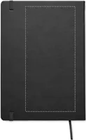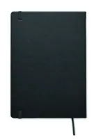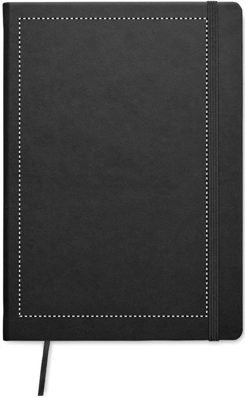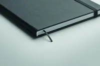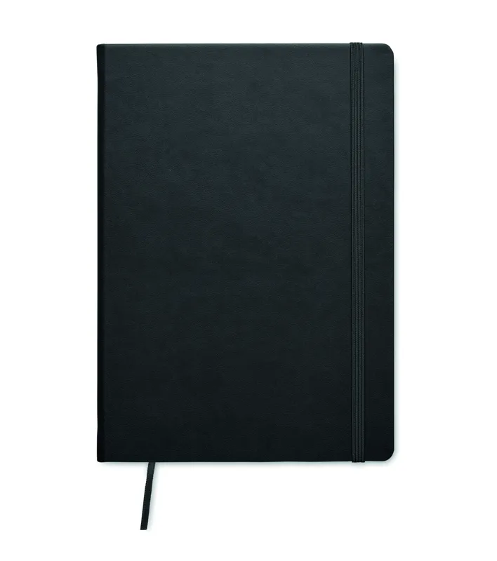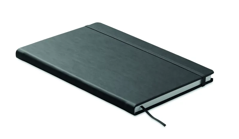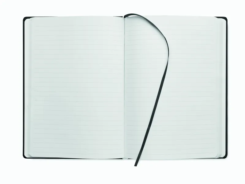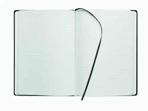 A5 jegyzetfüzet PU keménytáblás borítóval. Cérnafűzött. 200 vonalas oldal (100 lap) 80 g vastag újrahasznosított papírból. Színben illeszkedő elasztikus zárópánt és könyvjelző szalag. EU-ban gyártva.